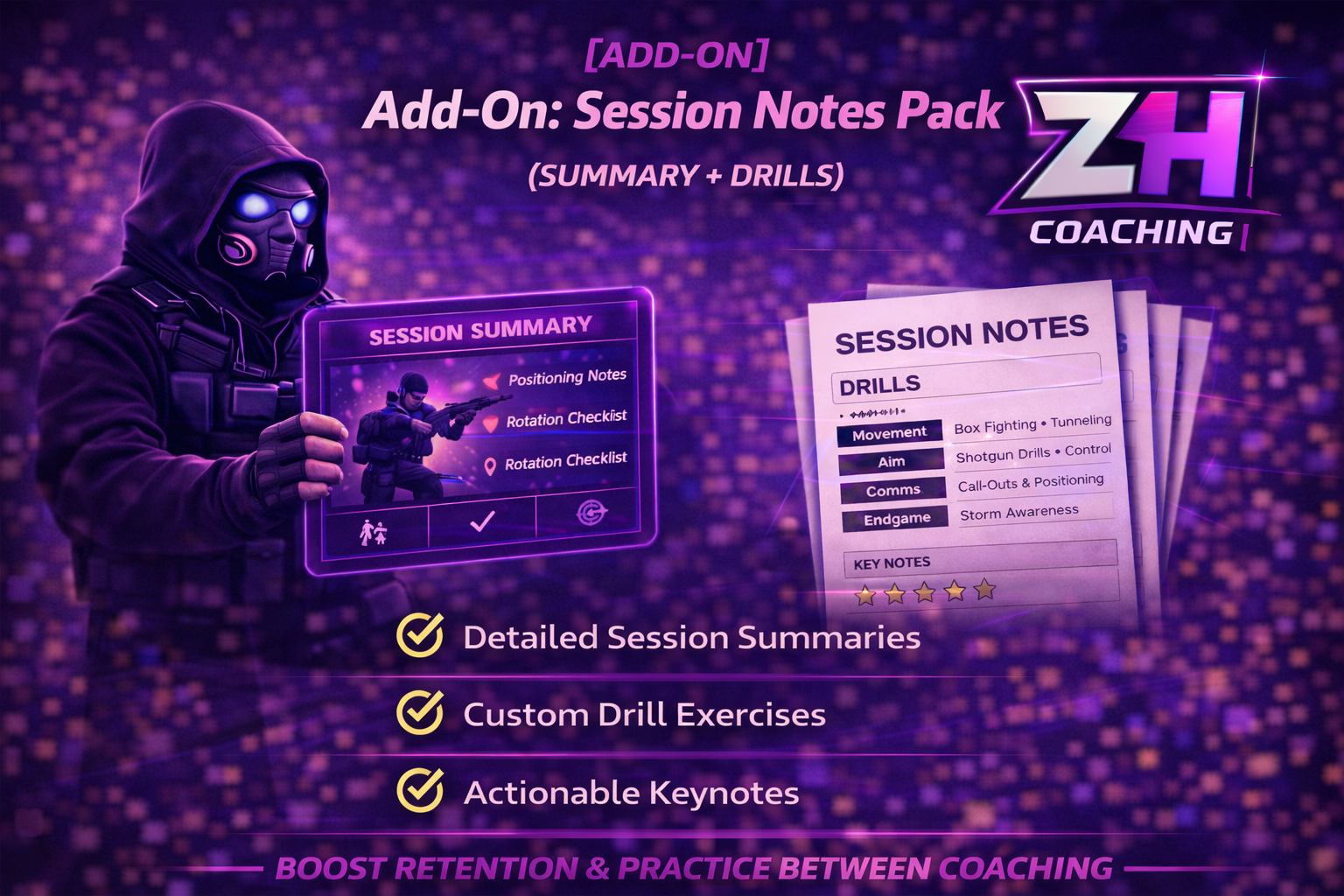 A fast, focused coaching session to fix 1–2 problems that are costing you games right now (mechanics, edits, aim, bad rotates, or a repeated mistake).